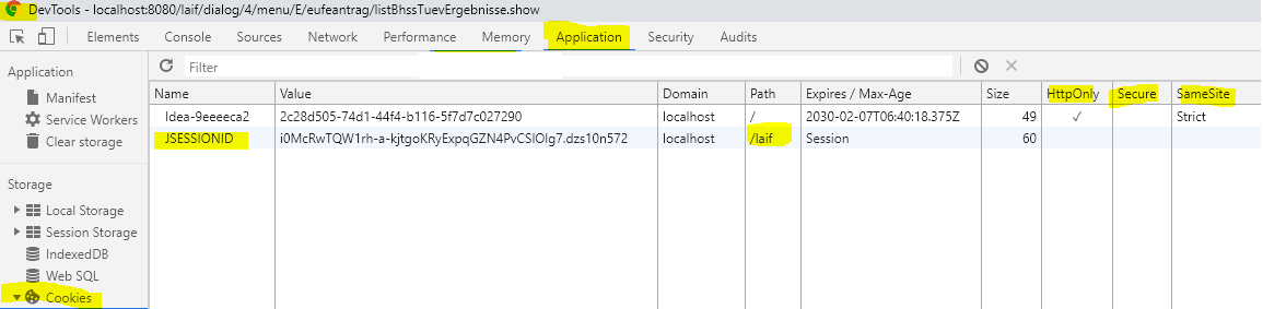 Das Cookie mit dem Name JSESSIONID hat keines dieser Attribute.